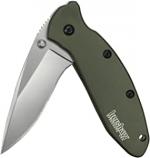 Kershaw Scallion, Olive Drab Pocket Knife (1620OL); 2.4” Bead-Blasted 420HC Steel Blade, Anodized Al...