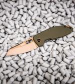 This exclusive Desert Warrior edition CRKT Sketch model has a copper finished D2 blade and an OD Green G-10 handle. Lucas Burnley has a created another EDC classic with a modified wharncliffe style...