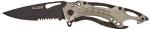 4.5" Closed Black Half Serrated Stainless Steel Blade Grey Aluminum Handle Can Opener, Glass Breaker and Pocket Clip