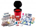 This compact survival kit is packed neatly into a durable waterproof cooler bag. It is perfect to keep in the office, in classrooms, at home, or in the car. The red cooler bag has the words "...