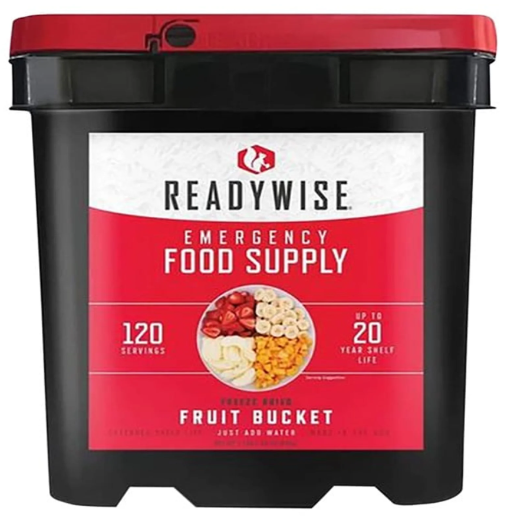 The ReadyWise 120 Serving Freeze Dried Fruit Bucket is a perfect addition to any food supply. Whether you're affected by a snow storm, hurricane or other weather emergency, it's wise to be prepared. These great-tasting freeze-dried and dehydrated foods are ready in minutes when you just add water. They also come in stackable buckets with an easy Grab-N-Go handle, so they're easy to store and transport. What's included in each bucket?