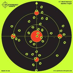 25 Pack - 12" Multi Bullseye Splatterburst Target - Instantly See Your Shots Burst Bright Florescent Yellow Upon Impact!