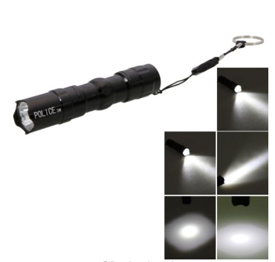 A revolutionary breakthrough in flashlight technology, and it is designed with optimum light output, the flashlight is suitable for home use, so we would like to recommend this high power LED flashlight to you. This is 3W 40-60 Lumens Police Aluminium Alloy Handheld LED Flashlight Torch. The LED flashlight is convenient and practical for your daily use. The beam from this LED flashlight is bright and stable. The fashionable LED flashlight is an ideal companion for you in the dark as well as a good helper for your camping, hiking, fishing, home lighting, etc.