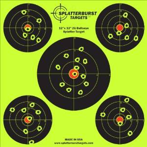 50 Pack - 12"x12" (5) Bullseye Splatterburst Target - Instantly See Your Shots Burst Bright Florescent Yellow Upon Impact!