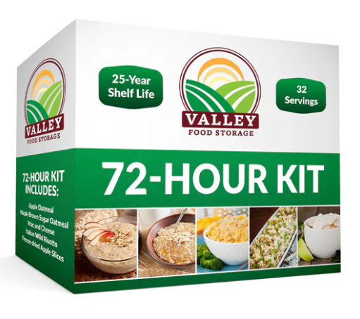 The Valley Food Storage 72-Hour Emergency Food Kit provides you with 1,800 calories per day for 3 days. Whether you're planning your next great adventure or preparing for an unplanned emergency, you'll be supplied with great-tasting and ready-made food you can count on with this 72-hour food kit, where quality always comes first.
