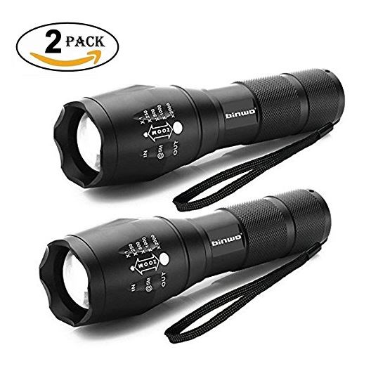 Binwo LED Tactical Flashlight, Super Bright 2000 Lumen XML T6 LED Flashlights Portable Outdoor Water Resistant Torch Light Zoomable Flashlight with 5 Light Modes