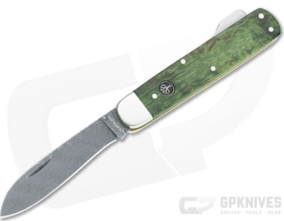 Boker Solingen Hunter's Knife Mono Damascus Green Curly Birch Lock Back Folder 118030DAM