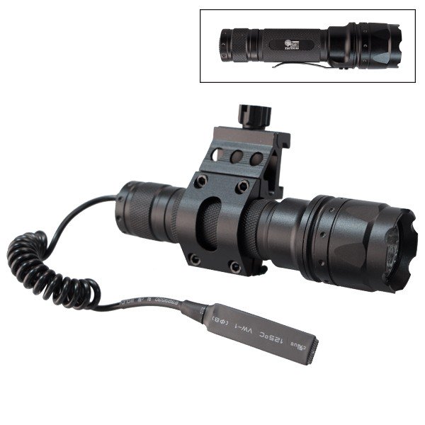 TARGET SPORTS 180 LUMEN LED LIGHT WITH OFFSET MOUNT PIGTAIL SWITCH Offset Picatinny/Weaver Mount Integrated Belt Clip Includes on/off end cap and wire pressure switch Batteries Included Strobes / S.O.S. Mode Equipped with USA ma