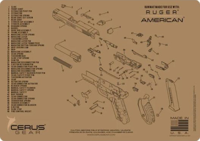 Cerus Gear Ruger American Handgun Schematic Cleaning Mat 12x17 Coyote Brown