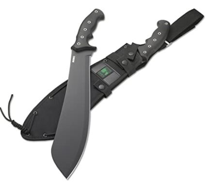 CRKT Halfachance Fixed Blade Parang Machete: 18 Inch Black Powder Coated Carbon Steel Parang Style Blade with Nylon Sheath for Survival, Hunting & Camping K920KKP
