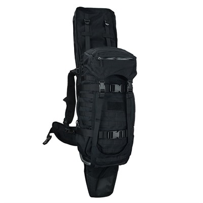 Complete Versatility in a Go Bag The Eberlestock Gunslinger II Pack takes all of the well-regarded features of the company's original Gunslinger Pack and increases its utility for military, law-enforcement and civilian users looking for a do-it-all bag. The Eberlestock Gunslinger II Pack comes equipped with a scabbard that accommodates firearms with larger optics and can work as a solid laptop or radio storage space for those not hiking a firearm for hunting or combat. The pack is also built on the company's Intex-II frame design, which blends the benefits of both internal and external frames for an ideal support solution. Available in black, coyote brown, military green or multicam Provides 2,100 cubic inches of storage space Total weight: 8.3 pounds External measurements: 22 inches x 10 inches x 8 inches The Eberlestock Gunslinger II Pack also allows users to attach extra gear in the field and features a number of internal organizers. Big Book Catalog, Issue:68, Page:553