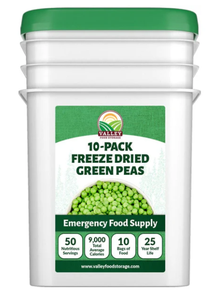 Valley Food StorageFreeze Dried Green Peas are one of the most popular veggies found in America! They keep their sweet taste, fresh green color, and nutritional content from fresh peas and can be added to almost any meal imaginable. Each pouch of freeze dried green peas contains 5 servings.