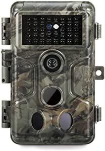 Super Low Light Sensitivity: Sony Starvis image sensor, extremely large aperture premium optics lens component, exclusive auto exposure and blur reduction algorithm combine to produce color images in low light, produce clear night vision in total darkness. Max. 24MP still picture. 100ft night vision flash range. H.264 Video Recording: Advanced H.264 1080P@30fps video recording with sound, replay more clearly, smoothly and save up tp 80% memory card storage compared to MJPG videos used in almost all trail cameras. Fast Motion Detection: Pre-activated technology for lighting 0.1s trigger speed, Super-fast 0.5s recovery time, 82ft detection distance. Very Easy to Use: TV remote style operation buttons, 2.4” high-res color screen for easy setup and playback. Accept max 128GB standard SD card (NOT included). More Features: 3 capture modes (photo, video, photo+video), time stamp, operation hours, time lapse, loop recording, long standby time up to 8 months (batteries not included), waterproof.