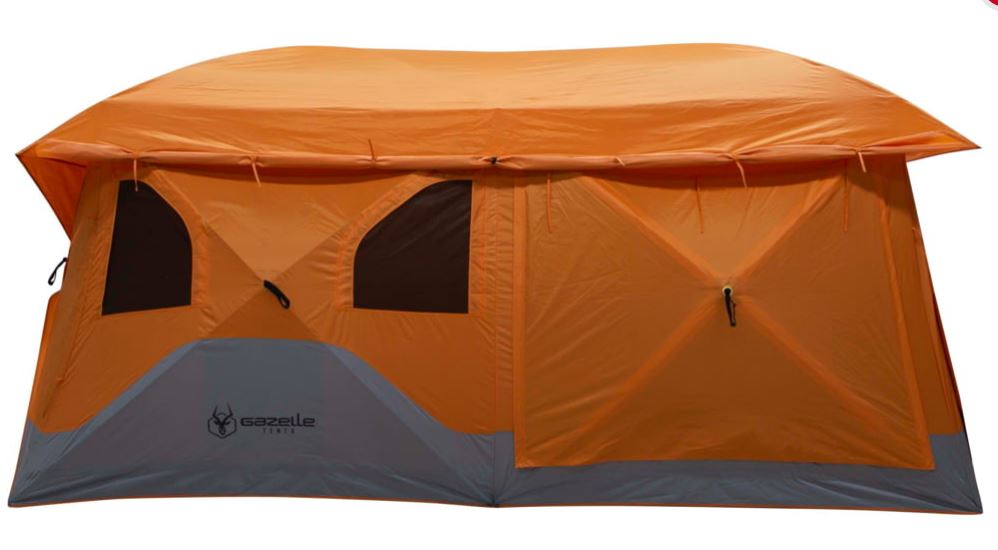 Product Info for Gazelle T4 Plus Hub Tent With Screen Room New for 2020 the T4 Plus tent expands upon the innovation of our line of camping tents by adding a screened-in, convertible second room. The privacy panels have been moved to the outside and now securely zipper into place and include a zipper cover to keep out the elements. This provides an added leisure area with cover from insects and the elements, but quickly converts into a second sleeping space when desired. A redesigned oversized rain fly easily attaches to the roof panels for extra protection. The large main entrance had been redesigned with added structure for easier load in. A new oversize bag has been added making pack up a breeze. So, whether youre looking for extra space to store your gear, more room for the family, or just an area to beat the elements the T4 Plus has you covered. WARNING: California`s Proposition 65 Specifications for Gazelle T4 Plus Hub Tent With Screen Room: Packed Size: 11 x 11 x 63 in Weight: 47 lb Zipper Type: YKK Sleep Capacity: 8-Person Color: Sunset/Sedona Orange Floor Material: 300D Oxford Weave Shell Rain Fly Material: 210D Oxford Weave Shell Internal Length: 168 in Internal Width: 94 in Internal Height: 78 in Floor Area: 110 sq. ft Doors: 2 Features of Gazelle T4 Plus Hub Tent With Screen Room Space to sleep 4-8 people Convertible screen room for additional leisure/sleeping area Hub design makes assembly fast and easy Six tight-weave mesh windows Large main entrance door and 2nd D-shaped door Redesigned front entrance has more structure for easy load in. Package Contents: Gazelle T4 Plus Hub Tent With Screen Room {"relations":[],"productCaption":"Gazelle T4 Plus Hub Tent With Screen Room","productId":1345904}