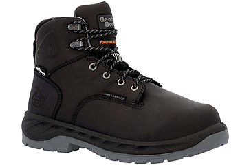 The Georgia Boot OT Composite Toe puncture-resistant internal metatarsal work boot is a high-performance work boot in a lightweight package. The upper on this black leather boot has a stretch gusset, padded tongue and collar, and combination hardware. Internal features include a guaranteed waterproof system lined in a soft performance mesh material, and a removable memory foam insole. The dual-density polyurethane and Carbo-Tec outsole on this direct attach work boot contains a fiberglass shank for added stability.