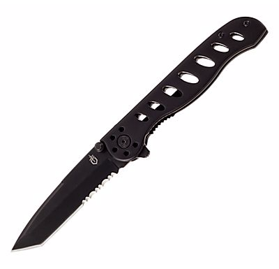 The largest in the Gerber® Evo series knives, the EVO Large Tanto folding lockback features a strong tactical design. The 3.5'' partially serrated, tanto blade features strong surgical grade stainless steel construction and a black titanium-nitride coating for excellent corrosion resistance and low reflectivity. Finger flip and dual thumb studs allow for easy 1-handed opening. It has a liner lock mechanism for 1-handed closing and a finger flip for easy opening. Pocket clip for convenient everyday carry. Weight: 4.3 oz.