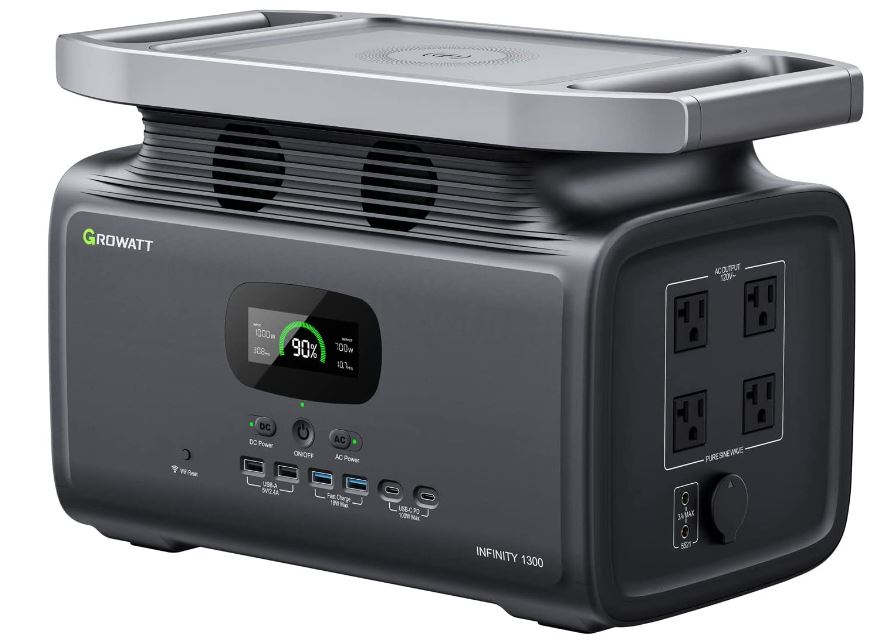 GROWATT Portable Power Station Solar Generator: Infinity 1300 Power Station with 1382Wh Lifepo4 Battery 1800W AC Output, 1.8H Full Charge Generators for Camping, Home, Emergency Backup,Power Outages
