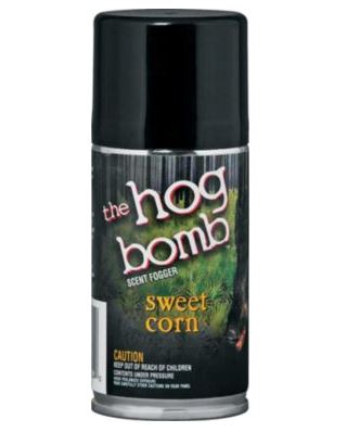The Hog Bomb: Sweet Corn scent is a food-grade attractant used as flavoring for cattle, equine and hog feed to stimulate the appetite. When dispersed, it forms a gas cloud for unparalleled downwind range. Disperse it in short bursts from your treestand or ground blind or lock it down to fog out the entire contents. It can travel downwind in excess of 1/4 mile in a 3-mph breeze, leaving a natural scent trail back to the can. The sweet corn scent creates a barrier between you and animals approaching from downwind. The Hog Bomb: Sweet Corn no-hassle can eliminates fumbling for scent wicks, cotton balls, drag lines or bottles of scent. It can be carried in your pocket and has a 180-degree valve that can be sprayed upside down. 5-oz. aerosol can.