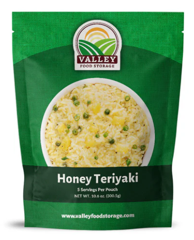 Valley Food Storage Honey Teriyaki features a sweet, tangy flavor and can be used as a side dish with a freeze dried chicken or as a dish all on its own making it perfect for a quick and convenient lunch or dinner for the whole family. Each pouch of honey teriyaki contains 5 servings.