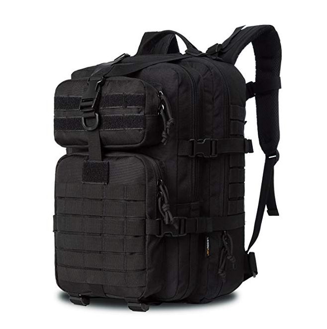 Tactical assault backpack Capacity: 34L. Size approx.:11"*18"*12" (W*H*D), Military backpack is made of 600 Density fabric, durable and Extreme Water Resistant