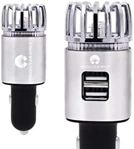 MELISSA'S AIR EFFECT- Car Air Purifier Ionizer 2in1 Plug in Air Freshener for Car, Blue Led Indication Light, Eliminate Odor, Dust, Pollen, Removes Smoke Smell, Car Ionizer Air - Color Silver