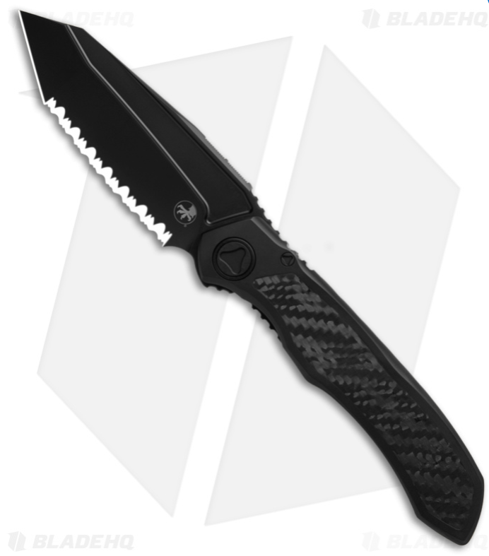 Microtech Anax T/E Frame Lock Knife Black Ti/CF Inlay (3.8" Black DLC Full Serr)