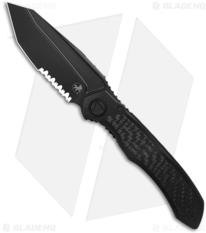 Microtech Anax T/E Frame Lock Knife Black Ti/CF Inlay (3.8" Black DLC Serr)