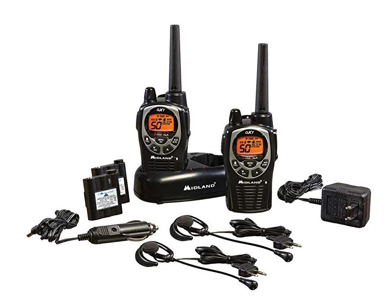 Midland - GXT1000VP4, 50 Channel GMRS Two-Way Radio - Up to 36 Mile Range Walkie Talkie, 142 Privacy Codes, Waterproof, NOAA Weather Scan + Alert (Pair Pack) (Black/Silver)