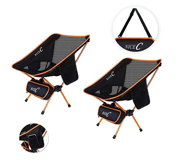NiceC Ultralight Portable Folding Camping Backpacking Chair Compact & Heavy Duty Outdoor, Camping, BBQ, Beach, Travel, Picnic, Festival with 2 Storage Bags&Carry Bag