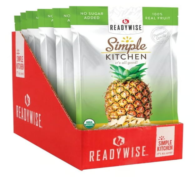 This box includes six pouches of Simple Kitchen's (a ReadyWise Company brand) freeze-dried organic pineapples. No fake flavors or preservatives. Product Specifications