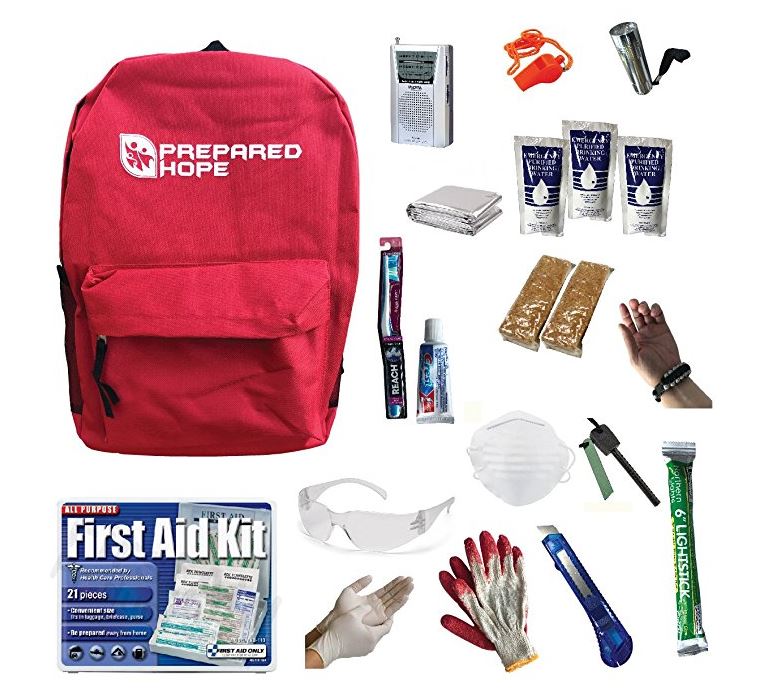 Prepared Hope ESSENTIALS Emergency Survival Kit for House Fires, Earthquakes, Hurricanes, Torandoes, Stranded Cars, and Bug-Outs with Backpack