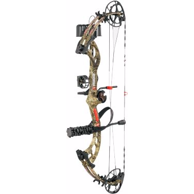 PSE Brute Force RTS Package Camo includes: Gemini sight, Whisker Biscuit® rest, Flexxtech 3 stabilizer, Shadow Quiver, aluminum peep sight, PSE neoprene sling, peep sight, nock loop.