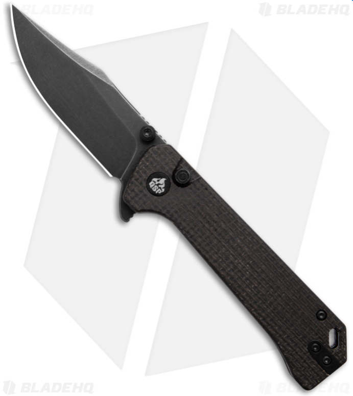 QSP Grebe Button Lock Knife Burlap Micarta (3.25" Black Stonewash) QS147-A2