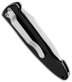 This is a custom edition of Randall King's wicked looking Tsavo Wraith. The ATS-34 blade is black mirror finished and laser etched with "TSAVO WRAITH, MADE IN THE USA, ATS-34" and has a copy of the designer's signature. The blade comes razor sharp, fires with a nice snap and locks securely into place. The knife body is anodized black T-6 aluminum and features custom abalone inserts. Despite being super slim, the Wraith has a good feel and we're quite impressed with the overall quality. There's a sliding safety on the back that works flawlessly and a pocket clip to make carry easy. The Tsvao Wraith comes in a metal collector's box.