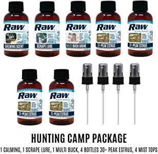 This fits your . Make sure this fits by entering your model number. P.when("ReplacementPartsBulletLoader").execute(function(module){ module.initializeDPX(); }) This Hunting Camp Package includes 7 bottles: Four(4) 30+ Peak Estrus 2 oz, One(1) Calming Scent, One(1) Scrape Lure, One(1) Multi-Buck Urine 30+ Peak Estrus Scent: Our 30+ Peak Estrus Scent is the strongest and most effective scent available. We use an innovative synchronization process to ensure the urine is collected during the peak estrus period. That means the estrogen levels in our deer lure are above 30 pg/mL which attracts mature bucks and ensures award-winning hunting results. Multi-Buck Scent: This strong Multi-Buck deer attractant scent fuses urine taken from dominant, rutting and young bucks. That will encourage mature bucks to come closer to your stand, as they will want to prove their dominance in the area. Bucks will also arrive quicker and stay in your shooting range longer. Scrape Lure Scent: Our 100% pure Scrape Lure Scent will create an illusion there is a new deer in the area, which triggers more bucks and does to come closer to the smell. It’s especially effective to make fresh scrapes and fire up existing scrapes. Use all season. Calming Scent: Deer depend on safety in numbers, and our deer Calming Scent is built with that behavior in mind. Bucks and does will feel there are more deer around and will feel relaxed to come closer to your stand. Use it during the entire season to efficiently cover your scent, and combine with other scents for the best results.