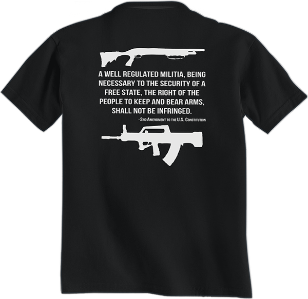 Only $19.95! (You save $7.00) Description Reviews Related Products Product Videos Warranty Also Viewed By Category Other Details Our Second Amendment t-shirt features the entire text of the second amendment on the back of the shirt. Image is on the front of a black t-shirt.