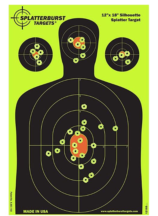 Splatterburst Targets 12 x 18 inch - Silhouette Reactive Shooting Target - Shots Burst Bright Fluorescent Yellow Upon Impact - Gun - Rifle - Pistol - AirSoft - BB Gun - Air Rifle