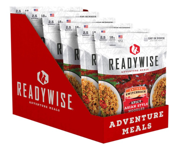 Each pouch of our Switchback Spicy Asian Style Noodles contains 2.5 servings and is resealable. These pouches are lightweight making them easily portable on any outdoor adventure. Just add water and you can eat directly from the pouch.