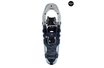 You won't sink in the snow with the Women's Tubbs Panoramic Snowshoes. They are specialized outdoor shoes that spread the user's weight out and allow them to travel mainly on top of rather than through snow. Customers love these Winter Sports Equipment because they are sturdy, lightweight, comfortable, easy to put on and take off by pulling up the BOA dial. The innovative, upturned tail of the aluminum Fit-Step frame reduces the impact on hip, knee, and ankle joints. The DynamicFit binding integrates the BOA Closure Fit System with the comfort of EVA foam, providing even pressure distribution around your boot and creating a precise fit with optimized control. The carbon steel Cobra toe crampon, located under the ball of the foot, provides constant contact in variable snow conditions, while its jagged tooth construction improves grip on packed snow and ice. Before your next trek out into the snow, make sure you're wearing the Tubbs Women's Panoramic Snowshoes.