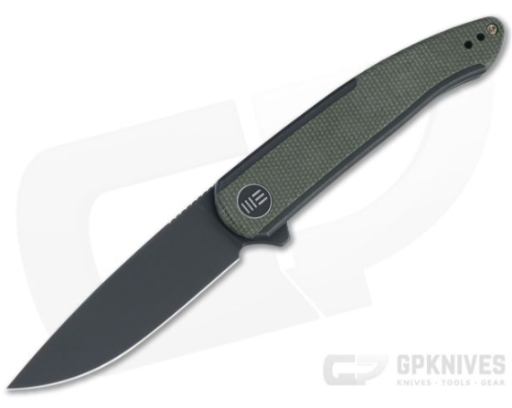 WE Knives Smooth Sentinel Black Stonewashed 20CV Green Micarta Inlaid Flipper WE20043-4